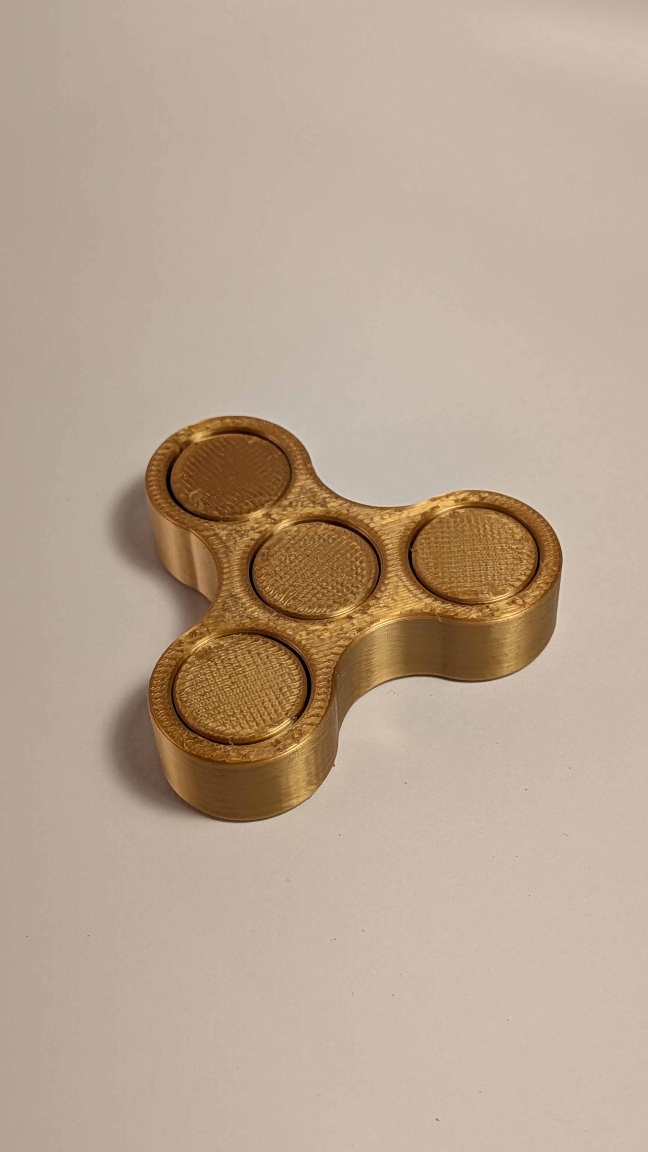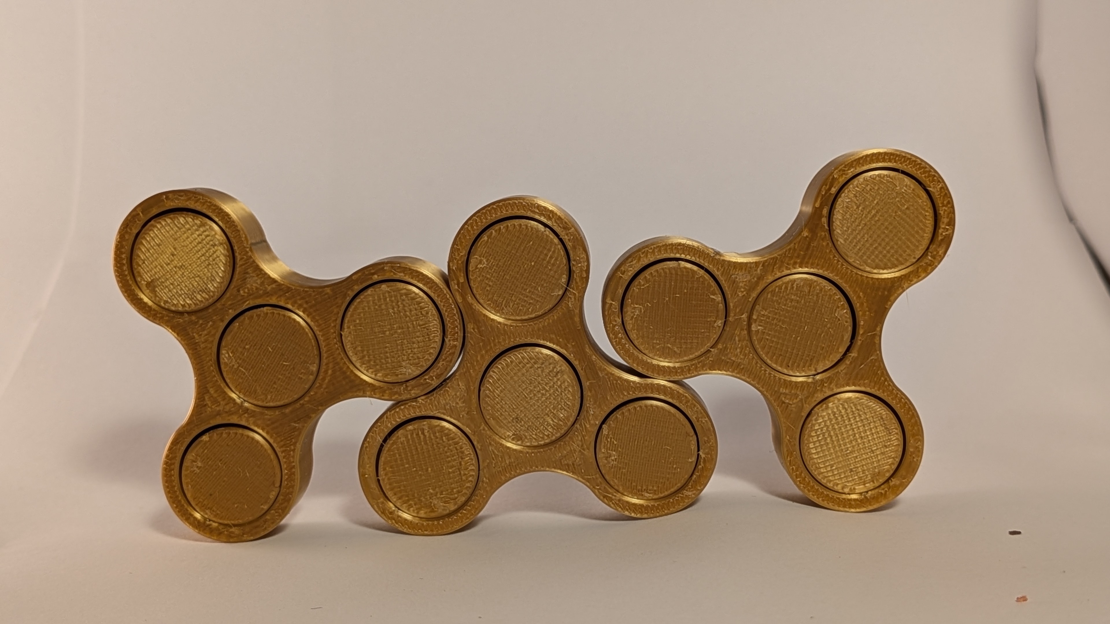 Because this fidget spinner is 3D printed rather than injection-molded in a factory, it has a unique handmade quality that mass-produced spinners lack. The gold PLA filament catches the light beautifully as it spins, creating a cool shimmering effect. Each spinner is printed one at a time with care, so yours is truly unique. Whether you're collecting fidget toys, need a fun stress reliever, or just want an awesome spinning toy, this 3D printed fidget spinner is the real deal.